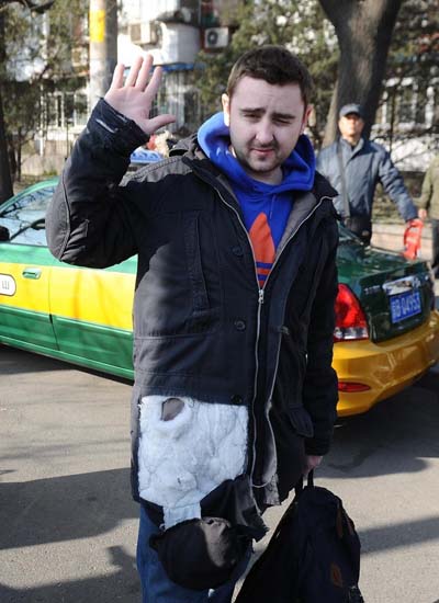 2013年12月2日,北京,外国小伙的衣服被中年女子撕烂。