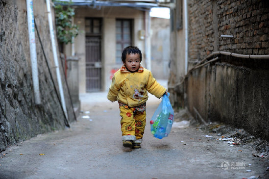 笑笑因先天性心脏病,易生病,一年多来,即使感冒发烧只带她去小诊所看病,就已让笑笑父母吃不消了。“哐”,门外一位路人丢下的矿泉水瓶子应声落地。2周岁的笑笑,抓起垃圾袋寻声出门,奶声奶气地嘀咕:“捡瓶瓶,捡瓶瓶去。”孩子何时养成这一“条件性反射”,连父母也说不上来,自从她看见爷爷用捡来的瓶子跟收废品的换回了钱后,她见到瓶子就会捡回家。爷爷算了算,笑笑三个月来捡的瓶子,卖了50多元钱。林福达/摄
