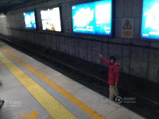 12月4日,一名女子在北京地铁一号线五棵松站跳下站台(手机拍摄)。当日11时左右,在北京地铁一号线五棵松站,一名女子经工作人员和乘客劝止未果跳下站台,逼停在驶列车。随后,该女子被工作人员制服并拉上站台。目前,事发原因正在调查当中。(新华社 王振)