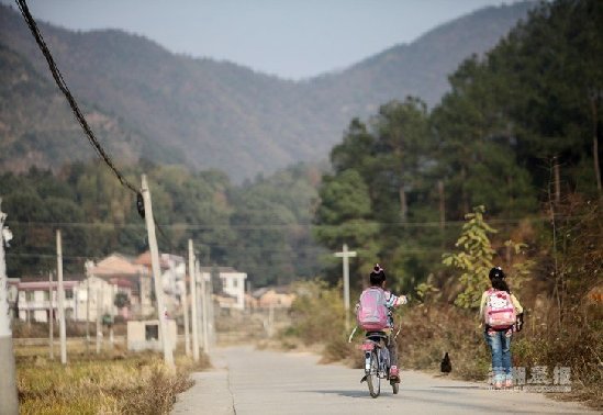 12月4日,湖南湘乡梅桥镇,放学后9岁的小燕和小翔(化名)依旧搭伴走在放学的乡村小路,对于孩子的她们并不明白校长对她们做了什么。摄影|赵赫廷