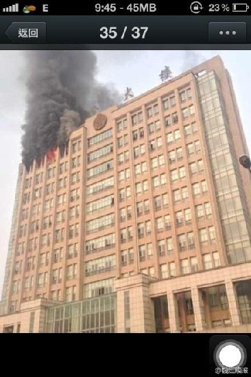钱江晚报:爆料人吴先生发来金华金东区政府办公大楼起火的现场图片。现场浓烟滚滚,希望没有人员伤亡!