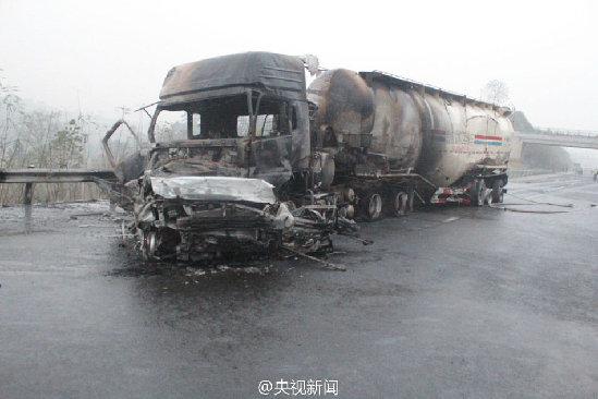 失控大罐车追撞18辆小车致8死26伤 现场惨烈