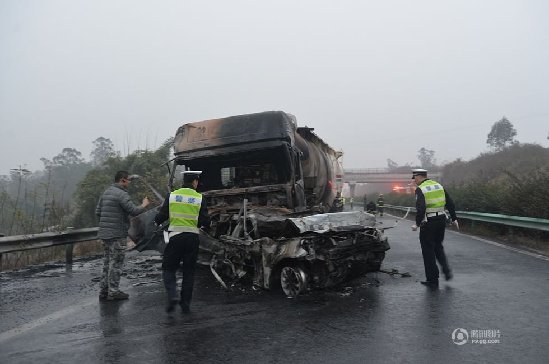 失控大罐车追撞18辆小车致8死26伤 现场惨烈