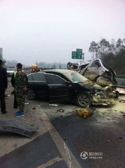 失控大罐车追撞18辆小车致8死26伤 现场惨烈