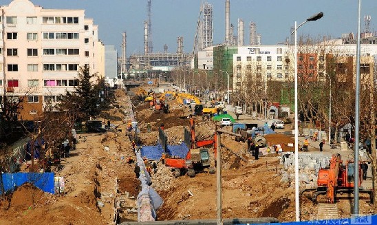 斋堂岛街爆炸受损的近千米地下排水暗渠在改建排水明渠。