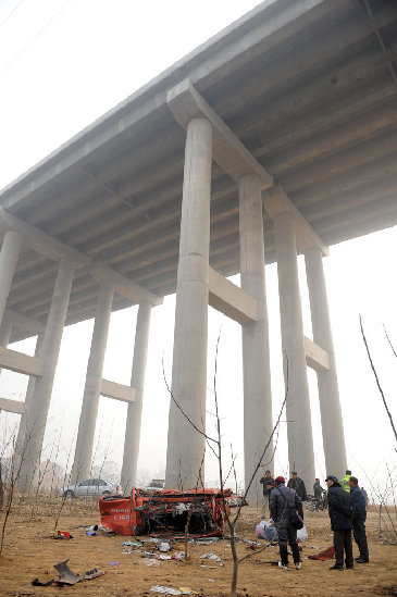 沪陕高速蓝田玉山段发生一起车祸,一辆大货车在行驶途中突然撞向高架桥护栏,导致车头坠下30米高的高架桥,货车司机当场死亡,车内的物品也散落一地。