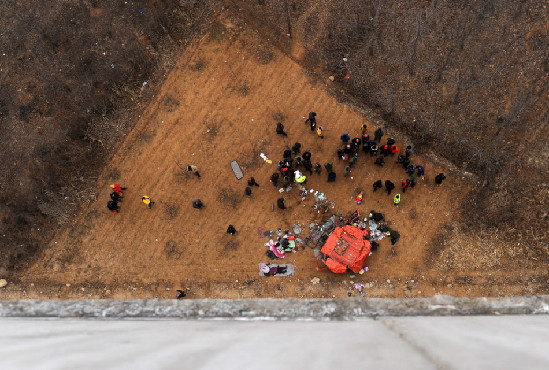 沪陕高速蓝田玉山段发生一起车祸,一辆大货车在行驶途中突然撞向高架桥护栏,导致车头坠下30米高的高架桥,货车司机当场死亡,车内的物品也散落一地。