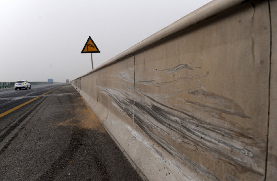 沪陕高速蓝田玉山段发生一起车祸,一辆大货车在行驶途中突然撞向高架桥护栏,导致车头坠下30米高的高架桥,货车司机当场死亡,车内的物品也散落一地。