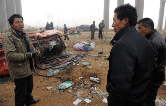 沪陕高速蓝田玉山段发生一起车祸,一辆大货车在行驶途中突然撞向高架桥护栏,导致车头坠下30米高的高架桥,货车司机当场死亡,车内的物品也散落一地。