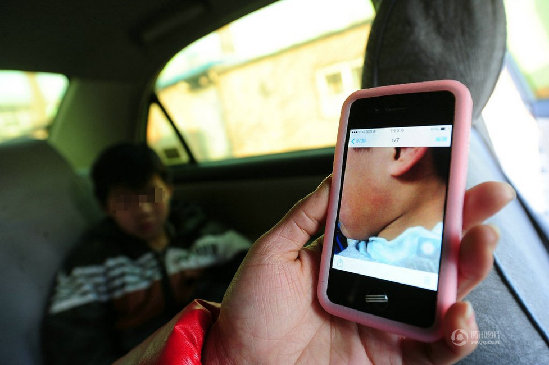 图为孩子当天被打伤时脸部有浮肿。在王四营中心小学分校外,记者见到了童童和他的父母。孩子的耳朵上还有外伤的痕迹,但已经看不到明显的肿状。童童捂着耳朵说,现在耳朵还是疼,并且总是有嗡嗡的声音。京华时报 陶冉/摄