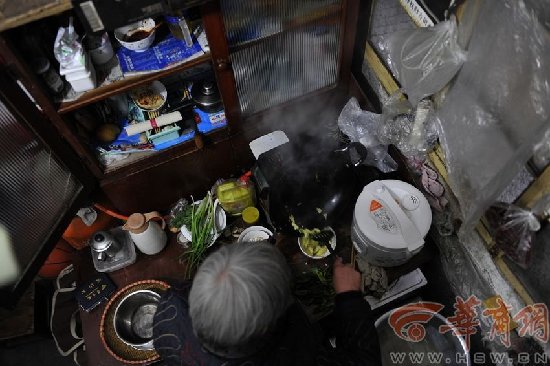 张改凤老人家里没有取暖设施,每块蜂窝煤0.46元老人不舍得花这个钱。她说自己吃饭非常简单,在菜市场捡一点菜叶,下一碗面就满足了。只是外孙女长身体,需要营养,其实小孙女平时也很简单,就喜欢吃方便面。