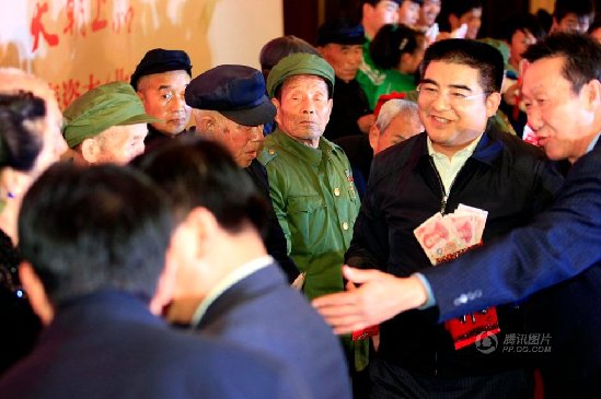 2013年12月21日,陕西省延安市,陈光标和百名企业家一起给当地老红军发红包。