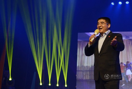 2013年12月7日,在山东省日照市莒县人民会堂“浮来春中国梦之夜慈善公益晚会上,黄浦集团主席陈光标在演唱歌曲。陈为峰 摄