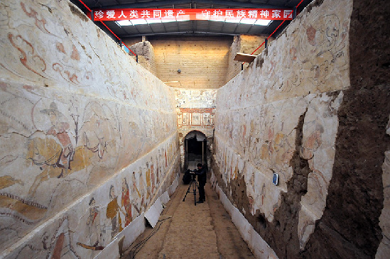 12月24日,来自国内的12名专家学者现场考察后,对壁画墓的学术价值给予高度评价。据专家介绍,该墓葬甬道两侧壁画中有约70平方米狩猎图,是我国目前发现的最大的北朝时期墓葬狩猎图。