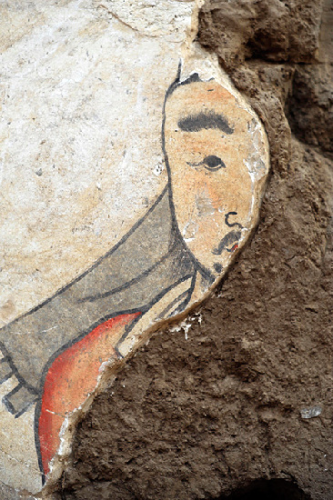 忻州市九原岗壁画墓中残存的壁画局部(12月25日摄)。新华社记者范敏达摄