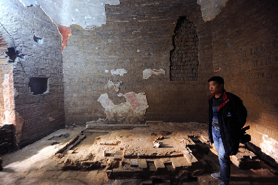 忻州市九原岗壁画墓墓室场景(12月25日摄)。新华社记者范敏达摄