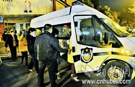 2013年12月13日下午,记者前往武汉市公安局,相关负责人听取情况后高度重视,决定趁平安夜当晚行动。经商定,由3名便衣民警与1名记者先进入该场所,另1名记者与其余民警守在外面,待时机成熟,里应外合,一举将其打掉。当晚9时许,民警直扑大厦,在二楼的一家足浴会馆内发现段某等8人涉嫌卖淫嫖娼,抓获涉嫌介绍容留卖淫嫖娼人员7人。15人均被行政拘留,该案件目前正在进一步调查当中。