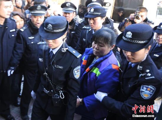 12月30日,陕西富平产科医生张淑侠拐卖婴儿案上午9时在渭南市中级人民法院公开审理,张淑侠在警察的押解下步入法院。张远 摄