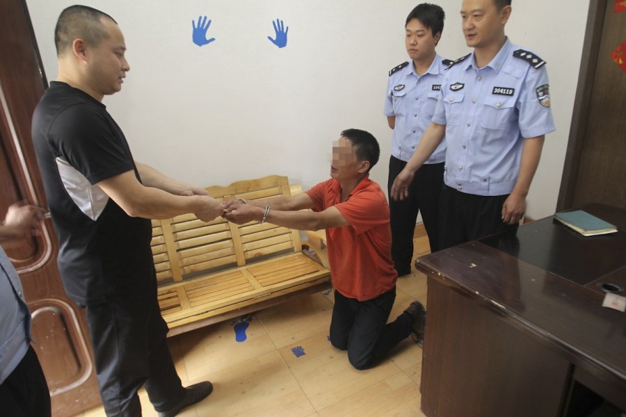 2013年5月22日,重庆市沙坪坝区井口派出所,一位四川籍杀人犯被重庆警方捉获,在押解回川前,他将最后的钱送给了一位他才认识的好心人。