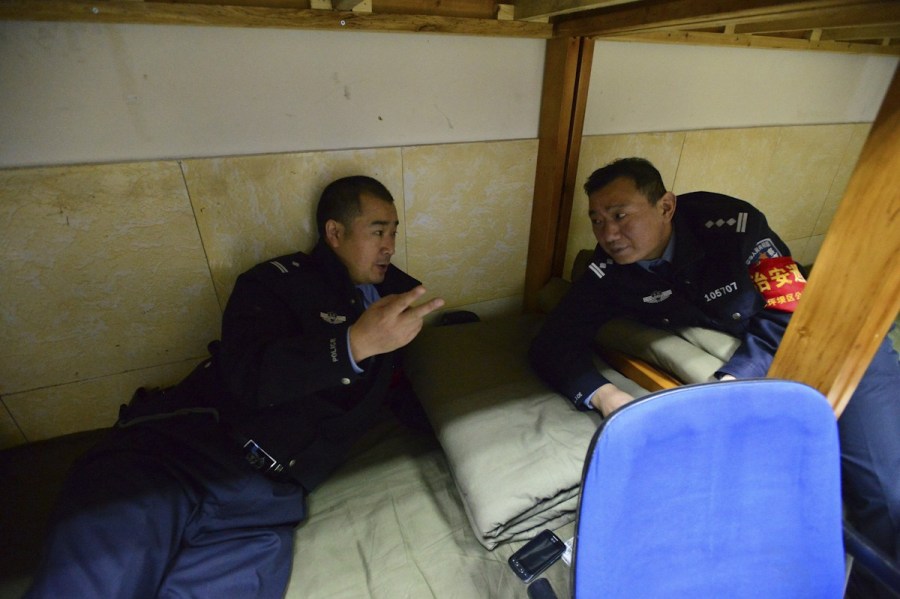 2013年11月14日22点40分,重庆市渝碚路派出所,两位民警正在对儿女就业问题进行争执讨论。