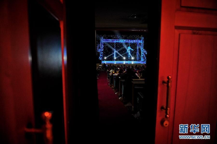观众在天津大礼堂剧场观看中国钢管舞队演出的钢管舞剧《钢管上的精灵》。