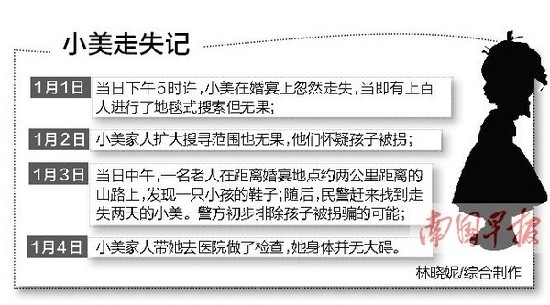 1月3日,有人在山路上,发现一只小孩的鞋子,民警随后赶到,找到了小美