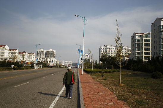 2013年9月,一位老人走在马路上。2014年之前,这里只有1路和6路两班公交车。