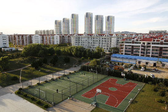 空荡荡的城市内,网球场上只有两个老人在锻炼。