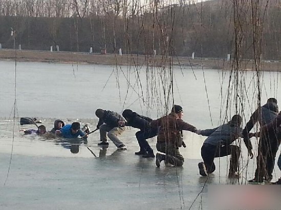 唐山大学生掉进冰窟窿 6名市民手牵手施救