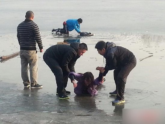 唐山大学生掉进冰窟窿 6名市民手牵手施救