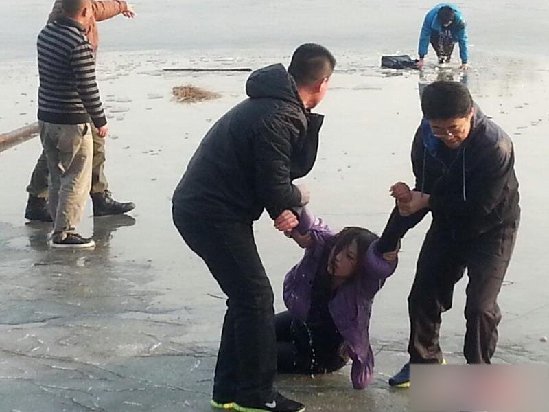唐山大学生掉进冰窟窿 6名市民手牵手施救