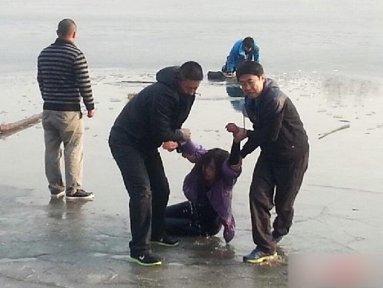唐山大学生掉进冰窟窿 6名市民手牵手施救