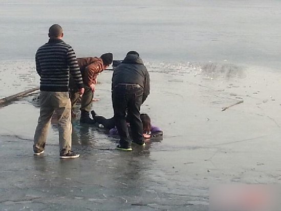 唐山大学生掉进冰窟窿 6名市民手牵手施救