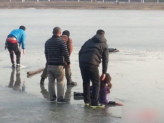 唐山大学生掉进冰窟窿 6名市民手牵手施救