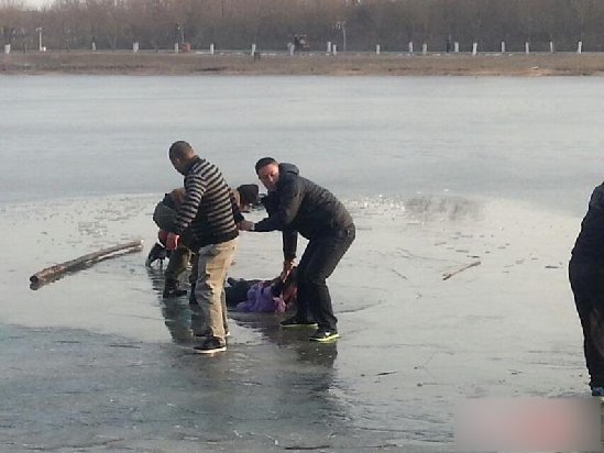 唐山大学生掉进冰窟窿 6名市民手牵手施救