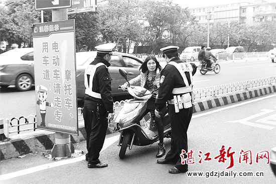 昨日,在霞山区人民大道南路段,值勤交警拦下逆行的车辆进行批评教育。