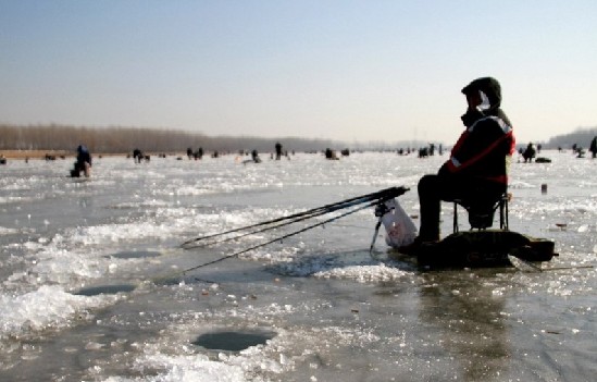 北京千人凿冰钓鱼 大量垃圾冻在河面