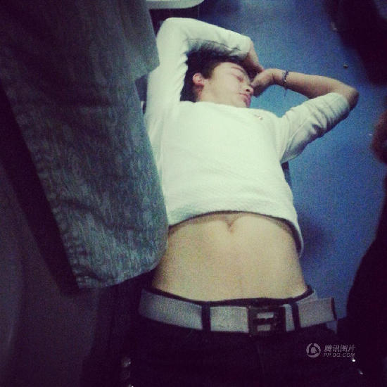 到了夜晚,车厢里的人们睡得东倒西歪。