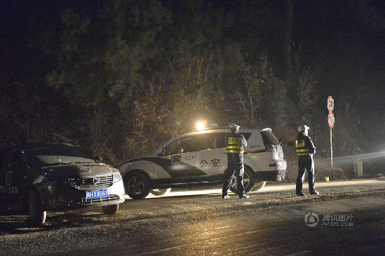 1月13日,警察在凯里市龙场镇老山村事发现场附近执勤。新华社发(陈沛亮 摄)
