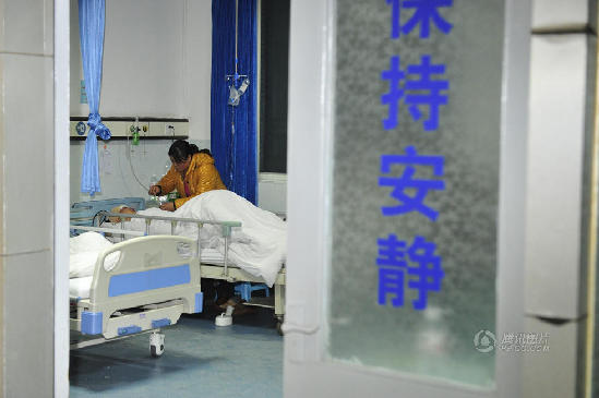 1月13日,一名伤员在贵州省黔东南州人民医院内接受治疗。新华社记者欧东衢摄