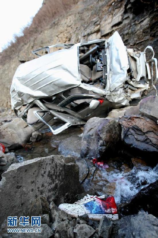 这是1月15日拍摄的事故现场,面包车坠入100米的深沟。
