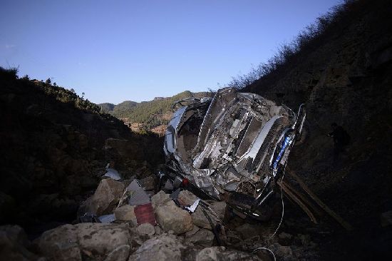 云南禄劝县一辆面包车坠入100米深沟 12人死亡