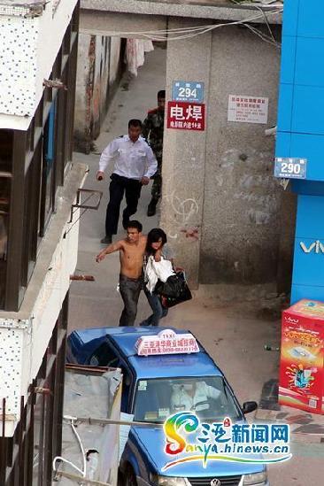 图为男子挟持女子快步走向出租车。邓松 摄 图片来源:三亚新闻网