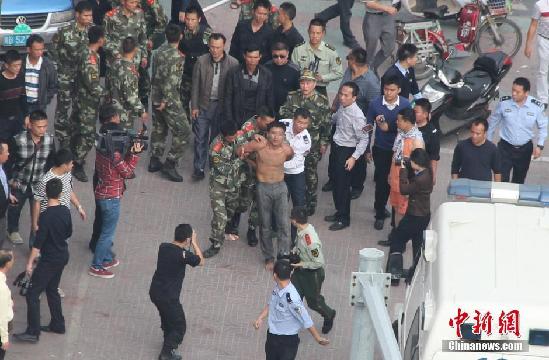 男子被抓获,并押往警车。中新社发 周君 摄