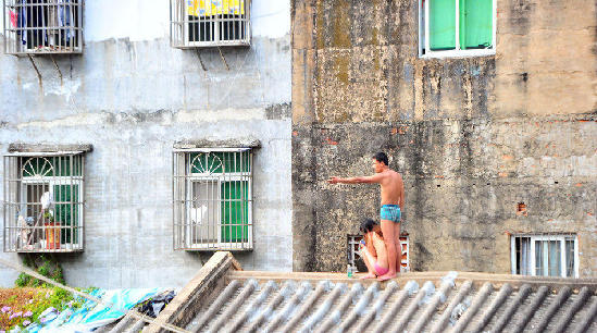 当天下午15时许,在一居民楼楼顶上,一名半裸男子手里拿着一把菜刀,揪着一名半裸女子的头发,男子情绪异常激动,不停地挥舞手中的菜刀。当时现场已被警方封锁,数百名市民围观。据现场一名目击者介绍,今天(1月20日)上午8点多,一名20多岁的男子在楼顶上要求女子脱下衣服,仅剩下一条内裤,而他自己也脱光了衣服。
