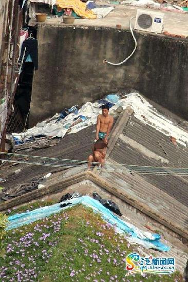 男子一手拽住女友的头发,另一只手持刀架在女友颈部。(三亚新闻网记者邓松摄)