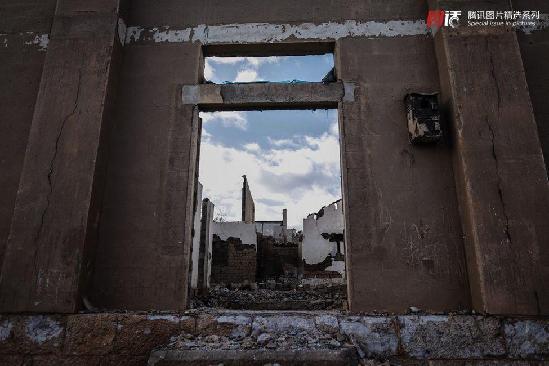 2014年1月15日,古城街道上,被烧毁的房屋只留下混泥土的支架。