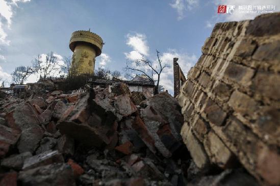 2014年1月15日,转经筒山下露出砖石、被烧毁的房屋。