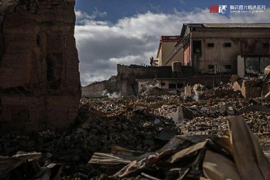 皮匠坡上,一名住户在自己被烧毁的房屋远眺。周边房屋已经全部烧毁。