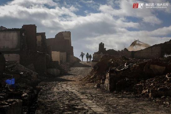 皮匠坡上,一外籍商户抗着梯子,带着全家人一起去清理被大火毁灭成废墟的房子。废墟中仅存的只剩下一些被毁的铁制品,全家人无功而返。
